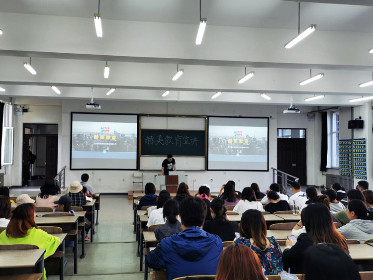 赫美教育是专注于提供一站式欧、美、英、加留学服务的教育类公司,赫美教育致力于培训培养各领域专业教育人才、开展国际文化交流、教育合作、留学后一站式服务的专业教育机构。公司的相关负责人介绍了公司的概况、理念、人才策略以及管理培训生情况,同时对于应聘者的具体要求和发展通道进行了介绍,并结合自身经历跟学生们分享了创业的成功的经验和心得。
