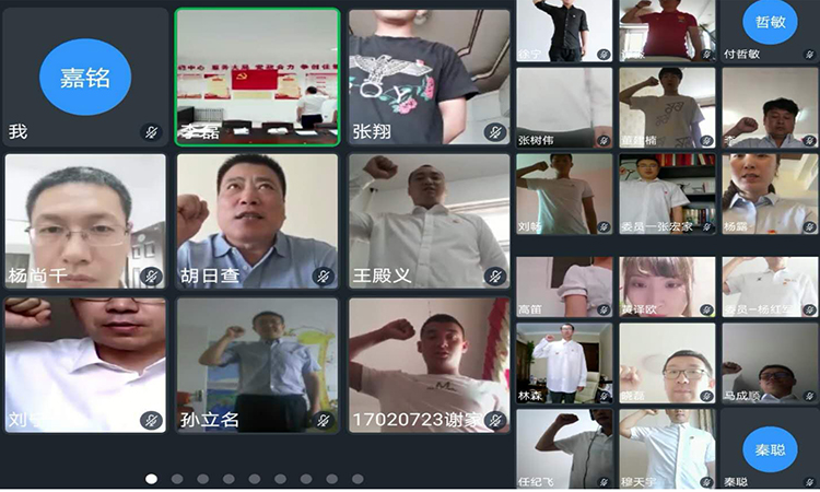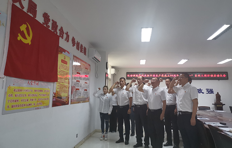7月1日,我院采取线上线下相结合的方式,召开庆祝建党99周年“七个一”系列主题活动启动大会,全院74名师生党员共同重温入党誓词,开展了“主题党日”活动。会议由党总支副书记李丁皓主持。