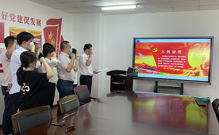 活动第二阶段为全体师生党员重温入党誓词,全体师生党员共同进入钉钉会议平台,主会场与分会场共同重温入党誓词,由党总支书记张建波领誓。