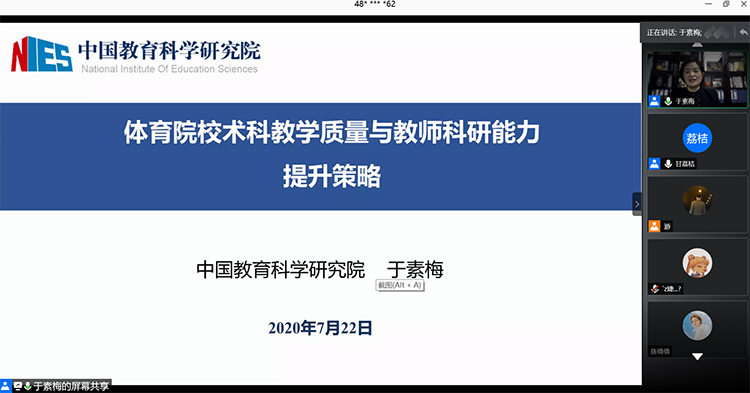 为进一步提升教师教学质量和科研能力,7月23日,体育教育学院邀请中国教育科学研究院体卫艺教育研究所副所长——于素梅博士作《体育院校术科教学质量和教师科研能力提升策略》的专题讲座。我院130余名教师参加了培训讲座,本次活动由体育教育学院副院长甘荔桔主持。