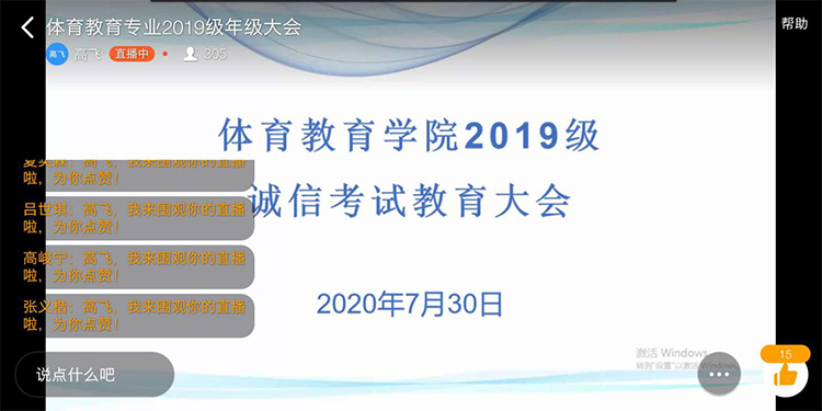 7月30、31日,体育教育学院2018级、2019级利用腾讯会议、钉钉等平台分别召开了线上诚信教育大会。会议由各年级辅导员主持。