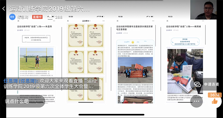 本次会议是本学期第二次通过网络召开的学生和家长共同参加的年级大会,网络视频会议作为一种新的教育活动形式,是开展大学生思想政治教育工作的新平台和新手段,运动训练学院各年级创新举措,突出实效,取得了线上思政和家校合作的良好效果。学院将以此为契机,在未来的工作中不断创新工作思路,为提高人才培养质量而不断努力。