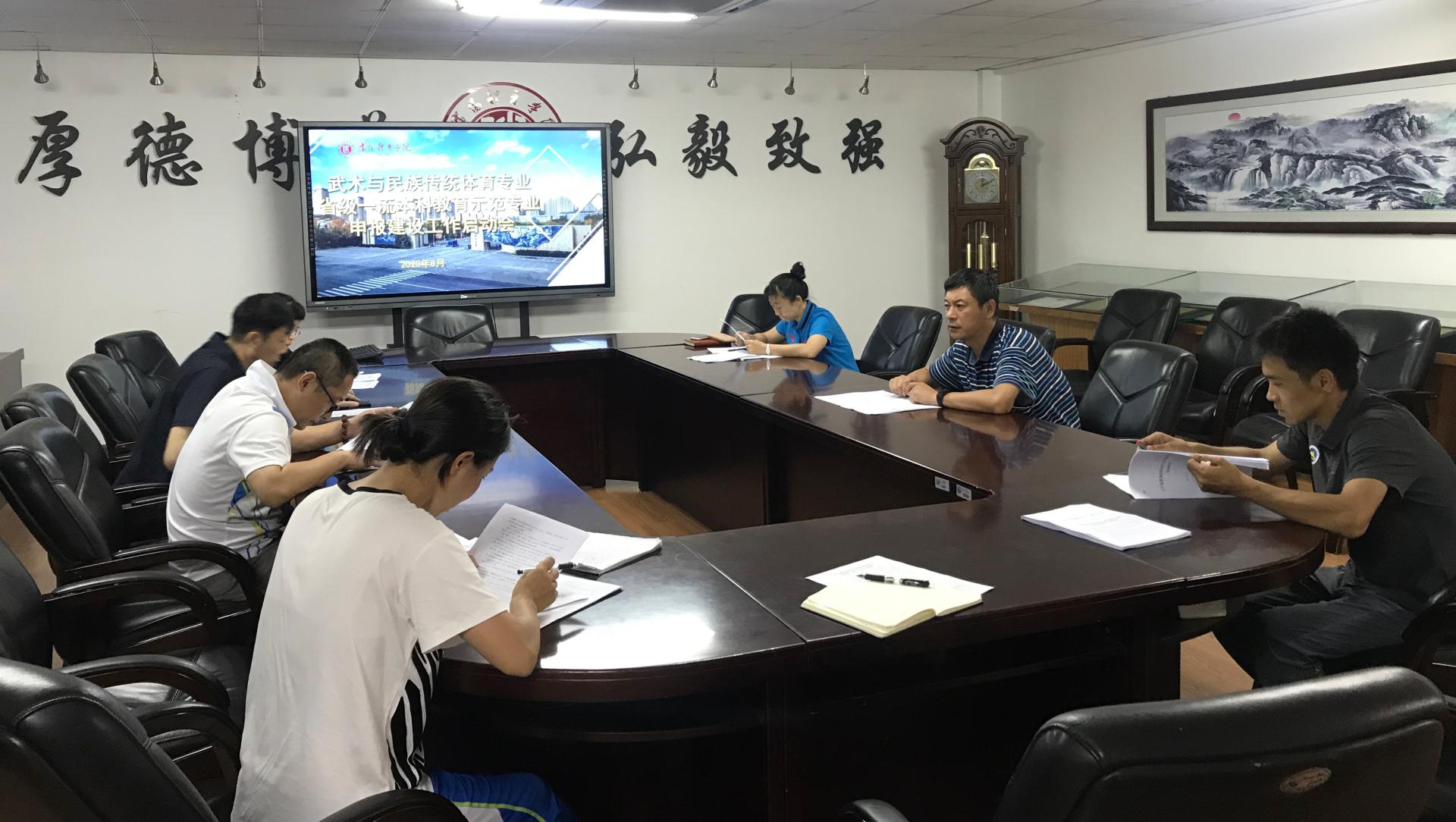 8月12日下午,武术与舞蹈学院在学院会议室召开武术与民族传统体育专业省级一流本科教育示范专业申报工作启动会。武术与民族传统体育专业带头人、骨干教师参加,党总支书记于文军主持会议。