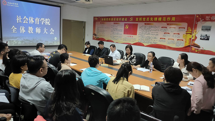 9月8日,社会体育学院召开新学期全体教师大会,会议由办公室主任杨洁主持,学院领导班子、全体教师参加会议。