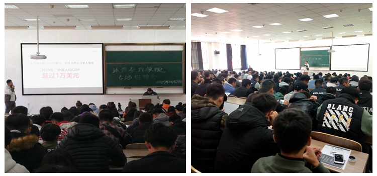北京花香盛世国际体育文化有限公司是一家以体育培训为根基,在幼儿体育、体育赛事、体育场馆等多领域发展的综合型体育文化公司。来我院宣讲的马新智、舒馨两位老师从行业前景、企业文化、岗位介绍、薪资待遇等多个方面,全面而详实地向我院同学介绍了该公司的基本情况,并对学生提出的问题一一解答。宣讲后,我院数十名毕业生在该公司进行了就业意向登记。