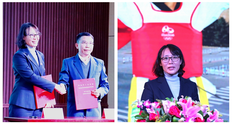 为响应习近平总书记提出的“三亿人上冰雪”号召,迎接2022年北京冬奥会的到来,大力弘扬奥林匹克精神,积极服务地方,激发广大中小学生参与冰雪运动的热情,同时为了更好的落实中共中央办公厅和国务院办公厅下发的《关于全面加强和改进新时代学校体育工作的指导意见》以及积极推进教育部和国家体育总局联合下发的《关于深化体教融合促进青少年健康发展的指导意见》相关工作,在学校领导的大力支持下,孟春媛代表竞技体校与沈阳市广全学校签订《深化体教融合、推动冰雪运动进校园合作协议》,并在会上做主题发言。她表示,此项工作意义重大、走在前列,在提高运动员文化水平和竞技体育后备人才培养以及服务地方,助力沈阳市中小学生在冰雪运动进校园的活动中定能优势互补、协作共赢。