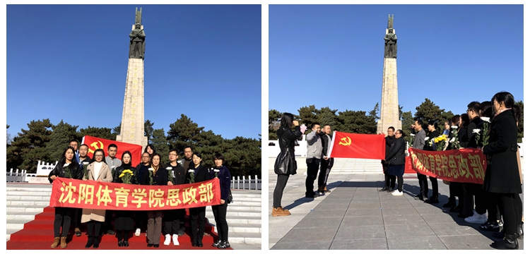长空一碧,松柏苍翠,沈阳抗美援朝烈士陵园庄严肃穆。大家统一佩戴党徽,怀着崇敬的心情瞻仰烈士纪念碑。直属思政部党支部全体党员在柳春清带领下,向烈士默哀并敬献鲜花。随后,在“抗美援朝烈士英灵永垂不朽”纪念碑前组织重温入党誓词活动。