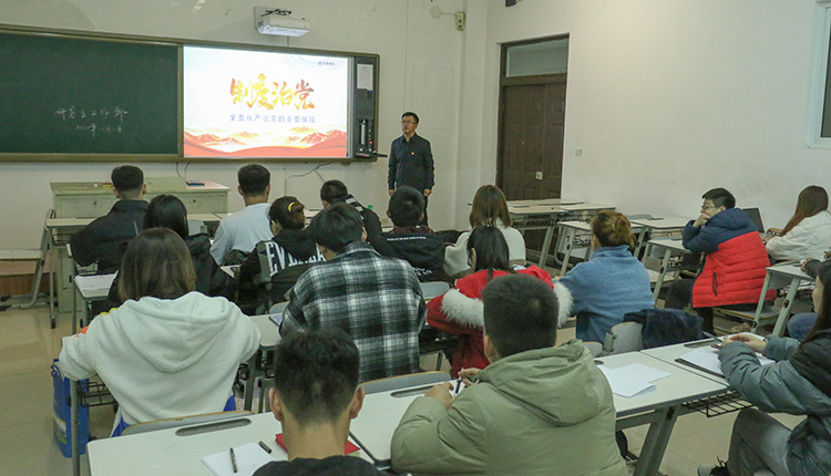 为深入推进习近平新时代中国特色社会主义思想和党的十九大精神进教材、进课堂、进头脑,全面落实立德树人的根本任务,充分发挥高校领导干部在形势政策教育工作中的示范引领作用,11月11日晚8点,研究生党总支书记刘振强在教学楼116教室开展了以《制度治党——全面从严治党的重要保障》为主题的形势与政策课,2019级各班班委及9名预备党员参加了此次课程。