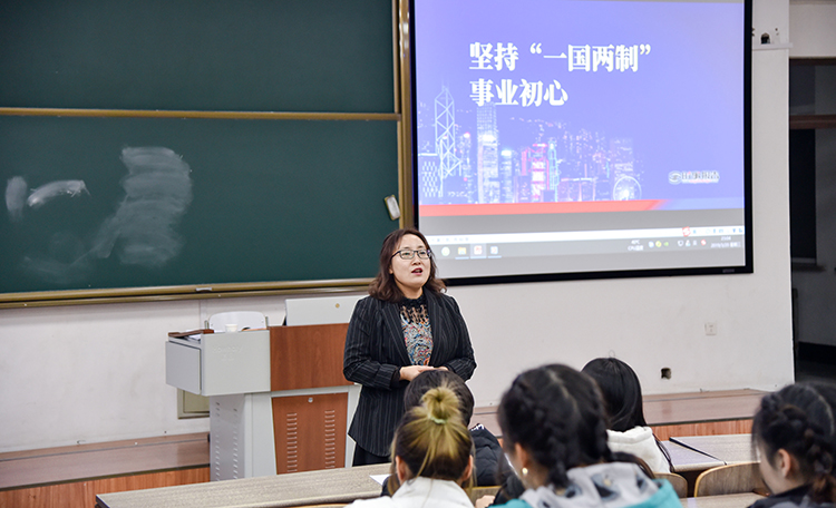 张建波和李芳从香港“修例风波”作为课程导入,深入的帮助同学们分析了香港的暴力事件,究其原因,就是割裂了“一国”和“两制”的关系,以香港特区的高度自治权来对抗中央的全面管治权。让学生认识到,从国家层面建立健全香港特别行政区维护国家安全的法律制度和执行机制,是坚持和完善“一国两制”制度体系的重大举措,是保证香港长期繁荣稳定、推进“一国两制”走向更大成功的创造性实践。