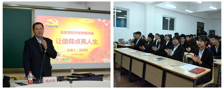 典礼结束后,刘丙权书记为学生讲授题为“让信仰点亮人生”专题讲座。他强调,加入中国共产党不是唯一目的,更不是最终目标,青年学生在实现入党愿望之后,要不断提升自我,坚持发挥党员的先锋模范带头作用,为党和国家做出更大的贡献。