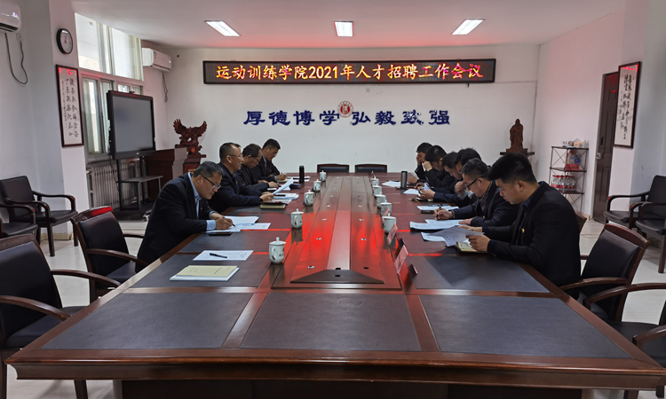 近日,我院召开2021年人才招聘工作推进会。党委常委、运动训练学院党总支书记孙旭东,院长崔鲁祥,党总支副书记李丁皓,副院长张麟寰,各党支部书记参加会议。