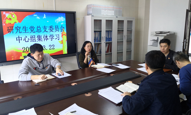 3月22日,研究生党总支书记刘振强主持召开党总支二级理论学习中心组集体学习会议。集中学习习近平总书记在脱贫攻坚总结表彰大会上的讲话、习近平总书记在党史学习教育动员大会上的讲话、《关于规范党员干部和公职人员操办婚丧喜庆事宜的暂行规定》。