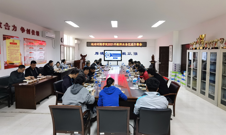 校党委常委、学院总支书记孙旭东在交流中表示,2021年是学校高质量推进内涵建设的重要之年,运动训练学院坚持以高质量建设“一流专业、一流课程”,高质量培育“一流团队、一流师资、一流人才”为目标,充分利用午休时间,选定不同业务主题,尝试以午餐会的方式,定期安排讲座、演示和主题发言,就教师们关心的业务话题进行深入介绍、交流和讨论,旨在进一步推进专项课程改革,进一步丰富教育教学方法手段,进一步激发教师为党育人、为国育才情怀。