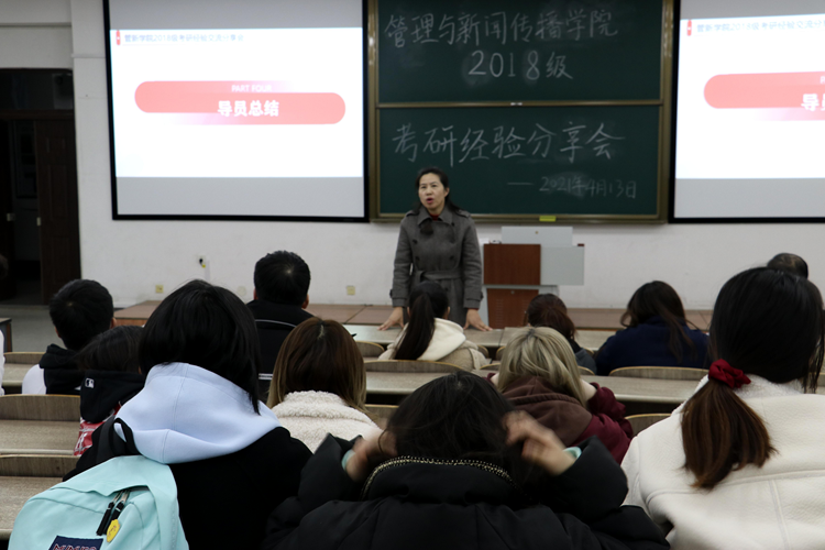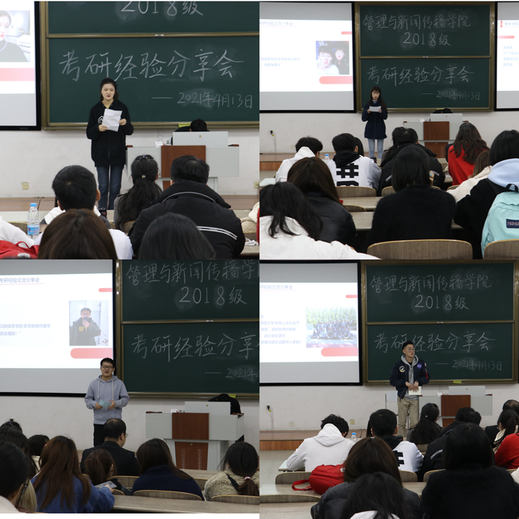 为了让考研同学明确考研目标,增强考研信心,掌握考研技巧,4月13日晚,管理与新闻传播学院在教学楼214教室举办了“群英聚首,剑指研峰”考研经验分享会。学院党总支副书记高鸿雁、2018级全体考研同学参会,分享会由2018级辅导员宋博主持。