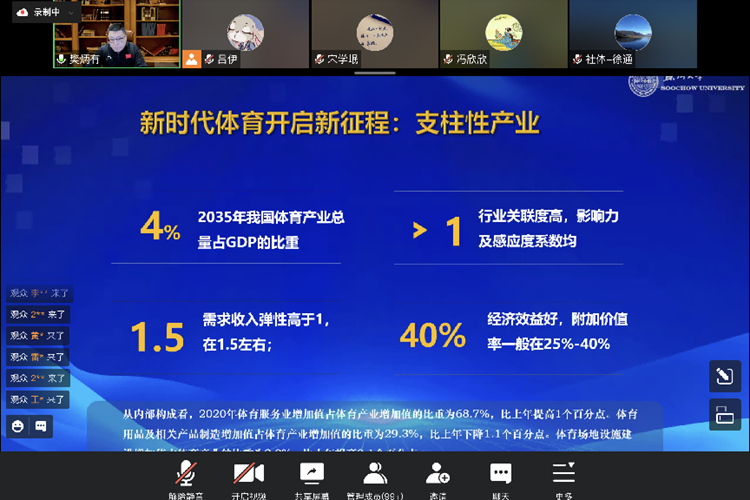 樊炳有教授讲述全民健身公共服务体系是为了推动落实全龄友好理念,普及全民健身文化。塑造人人关系支持全民健身公共服务体系建设,人人积极参与体育锻炼的社会氛围。同时对我国目前体育赛事的推动进程和大众健身的发展情况进行介绍。