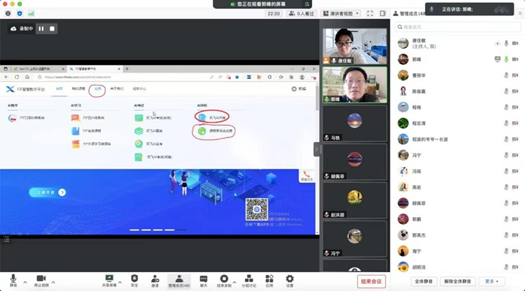 郭峰以课程目标达成度评价的相关文件和要求为基础,结合本专业课程示例,从学业成绩评价和师生问卷评价两方面进行讲解。演示了信息填报、数据录入、权重分解和指标生成等操作环节,重点对师生调查问卷的制作和发放进行了说明,并就操作细节以及常见问题进行了讲解和说明。