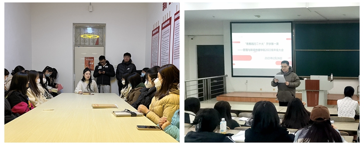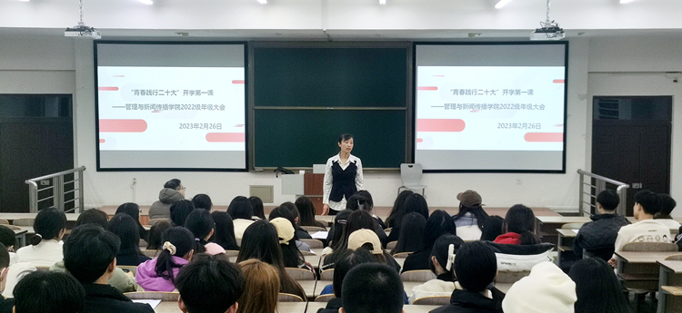 为进一步落实立德树人根本任务,确保新学期学生工作有序开展,使学生尽快适应校园生活,明确新学期各项工作学习任务,2月26日晚,管理与新闻传播学院各年级组织召开“开学第一课”主题年级大会。学院党总支副书记徐昕彤和全体学生参加,会议由各年级辅导员主持召开。