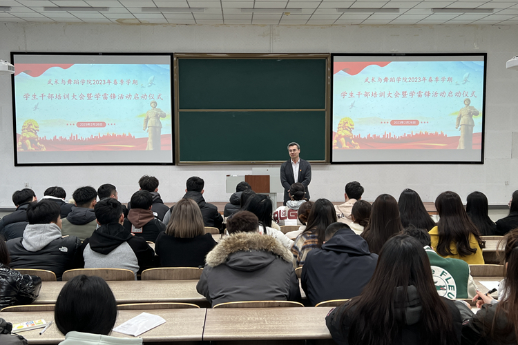2月26日,武术与舞蹈学院组织开展学生干部培训大会暨学雷锋活动启动仪式。党总支副书记林大志为70余名学生干部、党员培训,专兼职辅导员参与本次活动。