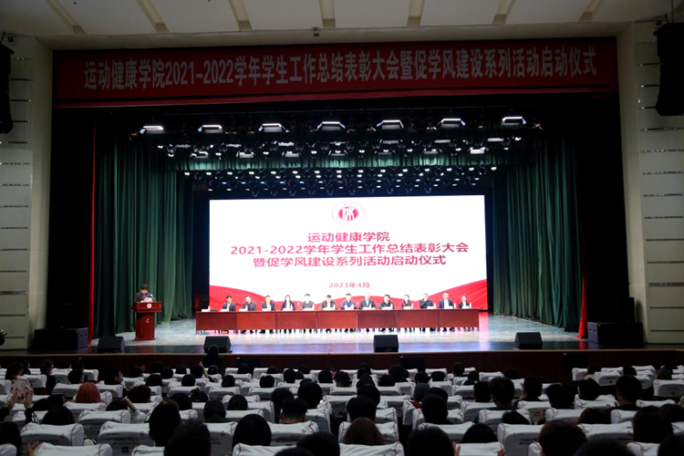 为表彰先进,树立典型,引导广大同学坚定信念,刻苦学习,形成争先创优的良好氛围,展现新时代大学生健康向上的精神风貌。4月12日晚,运动健康学院在大学生会堂举办2021-2022学年度学生工作表彰大会暨促学风建设系列活动启动仪式。运动健康学院全体班子成员、各教研室主任、辅导员和全体在校学生参加会议。会议由学院办公室主任郭鹏主持。