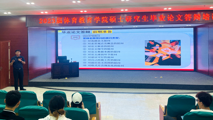 5月24日,体育教育学院硕士研究生毕业论文答辩培训会于图书馆一楼报告厅举行,体育教育学院院长李成梁出席并作《毕业论文答辩攻略》讲座,体育教育学院全体研究生参加培训,会议由副院长侯沛伟主持。