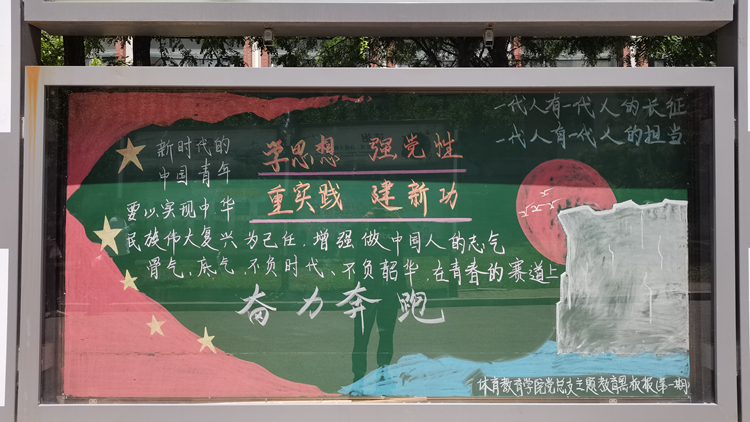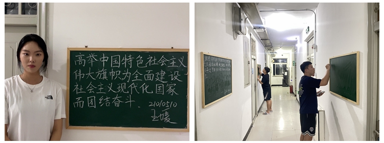 活动中,在学生宿舍区利用走廊墙壁小黑板开展“每日金句摘抄”评比活动,每月开展评选并将优秀板书进行展示;将学生宿舍区其中一块宣传栏做成传统的黑板,并组织学生围绕主题教育和专业能力提升定期进行传统黑板报的设计与书写,强化学生粉笔字书写和板报绘画能力;围绕师范生“三字一话”水平要求,开展习近平总书记重要讲话“读、写、晒”个人学习活动,每日朗读一段原著,每日书写一段摘编,每日晒一下学习成果,通过一系列的小举措来进一步增强师范生的技能本领。