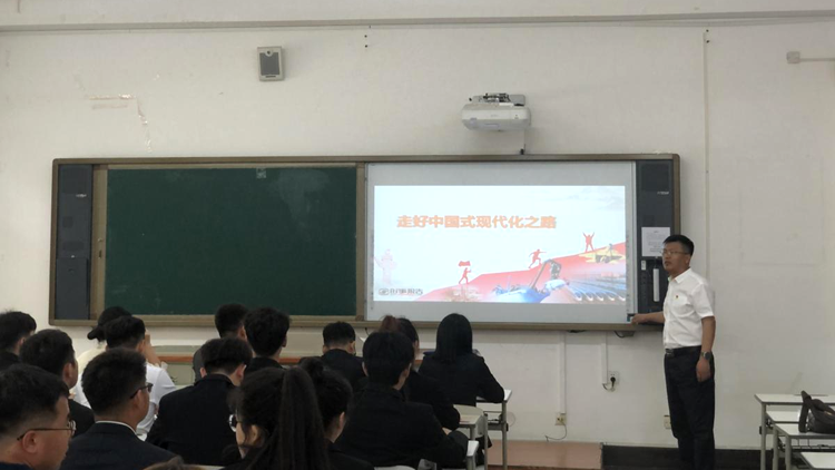 为扎实开展学习贯彻习近平新时代中国特色社会主义思想主题教育,教育引导广大党员坚定理想信念,提高党性修养,激励青年学子磨砺真才实学,焕发奋斗力量,研究生党总支书记刘振强于6月1日上午在教学楼113教室以“走好中国式现代化之路”为题,为研究生党总支学生第二党支部全体学生党员讲授形势与政策课。