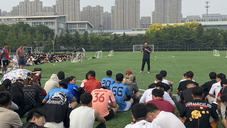 为将学习贯彻习近平新时代中国特色社会主义思想主题教育深入到人才培养工作,6月13日,运动训练学院2020级学生实习准备阶段的第五期讲座在足球场地开讲,本次讲座邀请博士生导师、美国俄亥俄州立大学人体科学系终身教授李卫东为2020级学生进行“打破传统体育教学模式:运动教育和实战情境课程模式相融合的实践教学演示”专题讲座。学院院长崔鲁祥、党总支副书记李丁皓、副院长张麟寰、运动训练学院足球教研室教师、2020级辅导员,学院全体在校生、体育教育学院2021级学生参加此次活动。