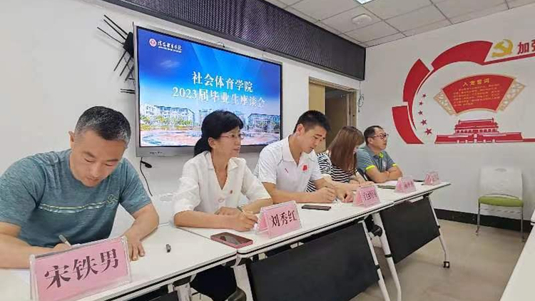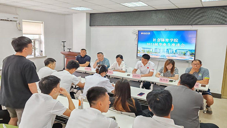 为进一步加强对毕业生的教育引导,倾听毕业生的心声,为专业建设和人才培养建言献策。6月20日中午,社会体育学院在游泳馆会议室召开2023届毕业生代表座谈会。社会体育学院党总支书记刘秀红、副院长宋铁男、办公室主任陈丹丹、各教研室主任以及部分教师代表出席座谈会。会议由党总支副书记白绍闯主持。