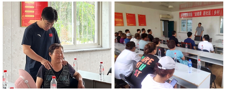 活动中,全体师生首先观看了刘千村乡村振兴发展成就展板,运动医学教研室郑锡明、臧广悦两位老师为在场村民讲解了部分慢性疾病与运动损伤的相关常识,随后,全体师生围绕心理健康、运动营养、身体指标、损伤防护等方面为村民做了咨询指导,并为部分村民进行了现场指标测试与损伤治疗。师生们耐心、细致的服务与讲解,得到了刘千村“两委”班子与广大村民的一致好评。