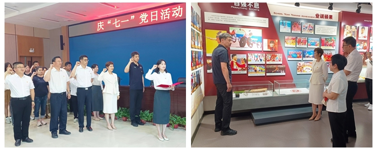 活动中,全体党员面向党旗,庄严宣誓,重温入党誓词,之后,共同参观了沈阳体育学院校史馆。参观过程中,同志们回顾了沈阳体育学院建校以来的光辉历程和取得的辉煌成就。尤其是近年来,学校充分发挥专业优势,服务我省残疾人体育事业发展,在体育赛事承办、运动队训练等方面与省残联深度合作,成果丰硕,得到了同志们的一致赞扬和肯定。