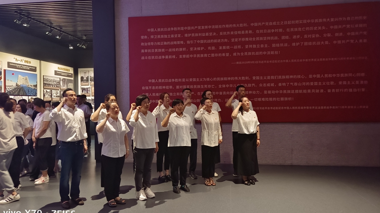 此次主题党日活动是一次爱国主义教育,让大家获得了思想的启迪和精神的滋养,进一步增强了党员意识,提升了党性修养,大家纷纷表示要牢记历史,勿忘国耻,学好用好习近平新时代中国特色社会主义思想,忠诚担当,奋进新征程,建功新突破。