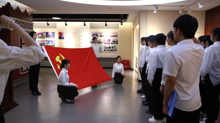 为认真学习宣传贯彻党的二十大精神,持续推进学习贯彻习近平新时代中国特色社会主义思想主题教育扎实有效开展,继承和发扬党的光荣传统和优良作风,7月6日下午,管理与新闻传播学院学生党支部在校史馆组织开展2023年新发展党员入党宣誓与老党员重温入党誓词活动。学院党总支副书记徐昕彤、专职组织员鲍韵竹、辅导员黄业荥、助理辅导员以及新老学生党员参加本次活动。本次活动由学院学生党支部书记王宏主持。