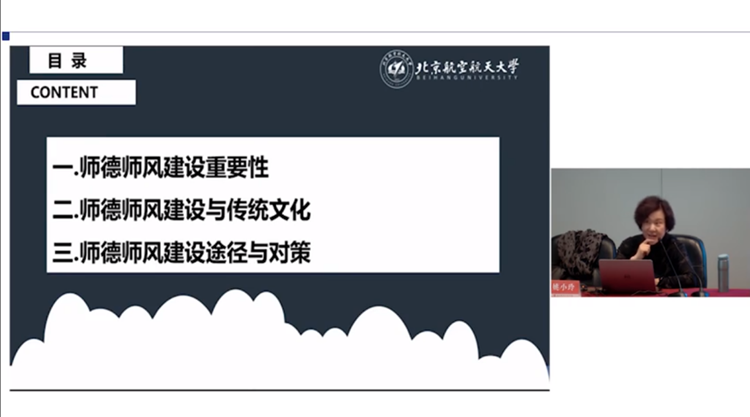 全体教师集体观看北京航空航天大学姚小玲教授的培训视频《师德师风建设——新时代高校教师的专业素养与品格》,深化对师德师风的理解,提高思想站位。