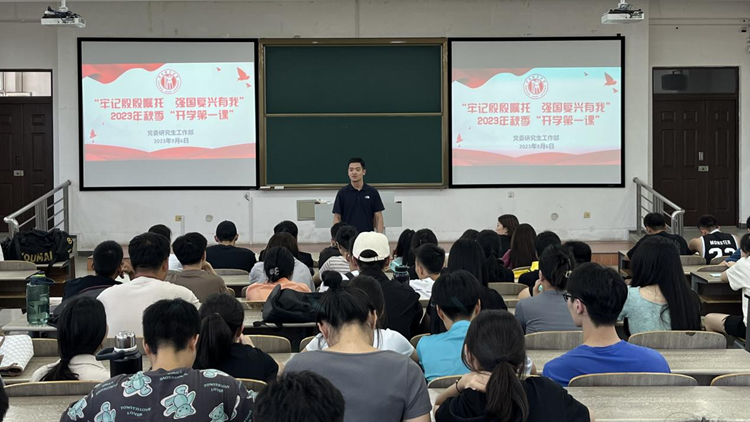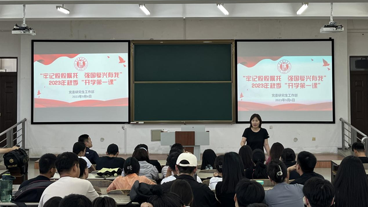 9月6日,党委研究生工作部召开“牢记殷殷嘱托 强国复兴有我”2023年秋季“开学第一课”暨2022级年级大会。党委研究生工作部副部长、研究生党总支副书记王晓艳出席此次会议。会议由2022级辅导员张国威主持。