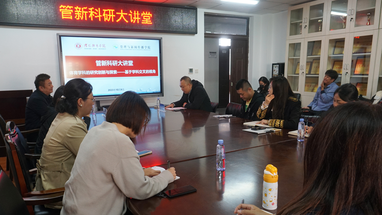 黄谦教授就体育科研新领域的探索、体育学科研究方法的创新、跨学科科研平台的搭建三个方面展开论述。对于广大教师关注的在体育科研新领域中如何发现新问题、如何为新课题建立科研框架,以及如何通过学科交叉创新体育学科研究方法等问题,黄谦教授一一作了详尽解答。黄谦教授强调,管理与新闻传播学院所辖的体育管理学专业和新闻与传播学专业均属于应用学科,科研创作需要系统的理论体系作为支撑,鼓励广大教师注重积累文献,夯实理论基础,创作有高度、有深度的学术成果。