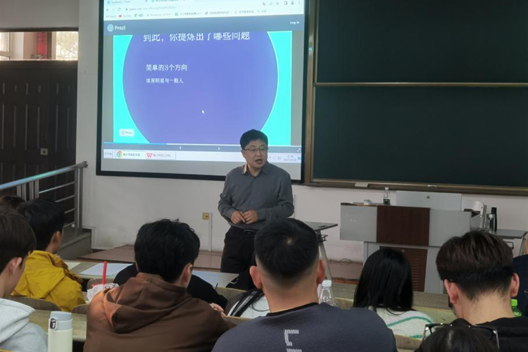 窦广波博士从“体育类C刊的社会体育领域范例、多学科交叉演变逻辑、选题的逻辑流程、选题的难点”四个方面为研究生的选题指明了方向。窦广波真诚的分享,得到了研究生们的热烈回应和积极参与,在座的同学们纷纷表示受益匪浅。