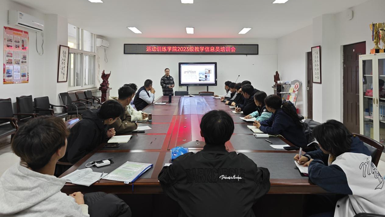 10月26日,运动训练学院在篮排馆一楼会议室召开2023级教学信息员培训会。运动训练学院副院长张麟寰出席会议,运动训练专业2023级全体教学信息员参加培训。会议由办公室教学干事宋博主持。