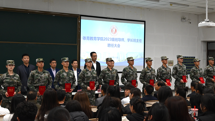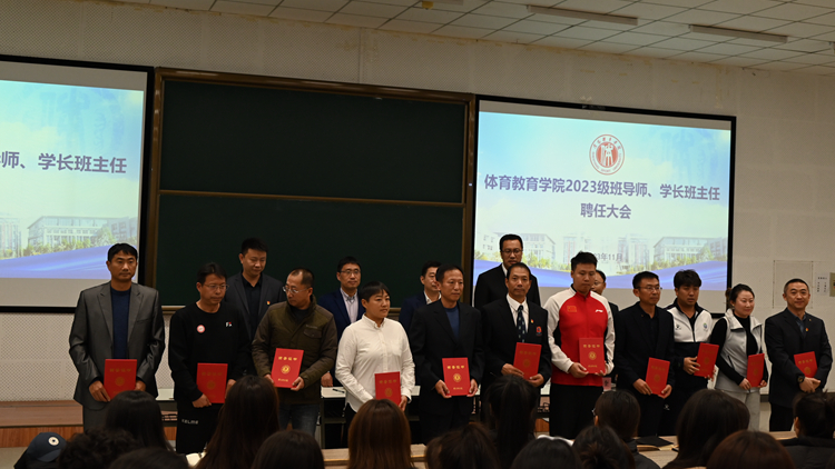 为加强体育教育专业2023级学生的思想教育工作,体育教育学院分别选聘14名班导师和14名学长班主任,在学业辅导、生活指导和心理疏导等方面帮助学生做好规划并解决实际问题。11月1日,学院举行班导师和学长班主任聘任仪式,学院全体领导班子参加。