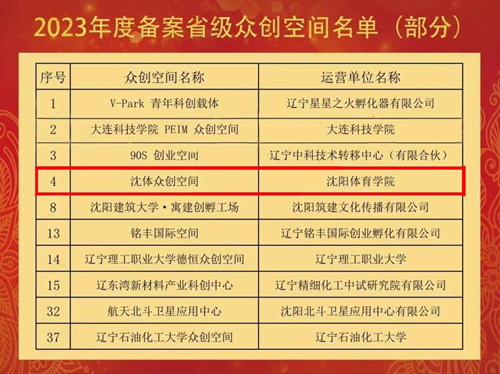 近日,由我校创新创业中心申报的“沈体众创空间”成功获批“2023年度辽宁省省级众创空间”。