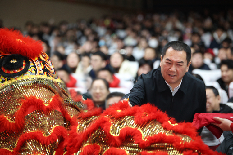 演出由学校龙狮代表队表演的《雄狮少年》拉开序幕,党委书记高向辉为沈阳体育学院醒狮点睛,携手全校师生共同祝福学校事业发展在新的一年里再上新台阶、再谱新篇章。