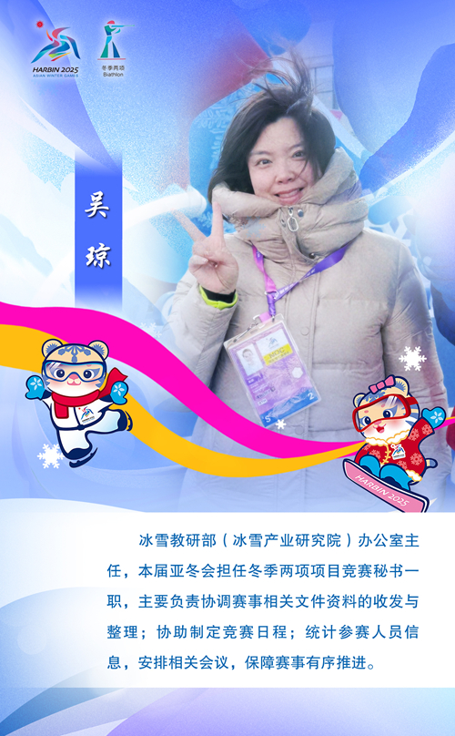 近日,第九届亚洲冬季运动会在哈尔滨圆满收官,来自34个国家的1200余名运动员历经8天的激烈角逐,尽展冰雪风采。我校选派13名教师、1名博士研究生和1名硕士研究生参加本次亚冬会的赛事执裁工作,他们赓续冬奥精神,共筑冰雪荣光,凭借扎实的专业素养与热忱服务,圆满完成本次亚冬会各项目执裁任务,得到各方广泛赞誉。