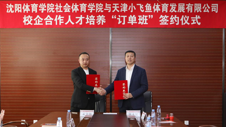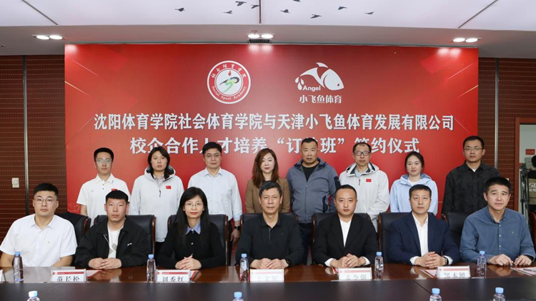 于文军对天津小飞鱼体育发展有限公司一行的到来表示热烈欢迎。他表示,学校高度重视双方的深度合作,对订单班的高质量开展充满期待,并对订单班的建设提出三点希望和要求,一是要切实发挥订单班的纽带作用,深化产教融合创新;二是要坚持以高质量发展为引领,打造人才培养示范标杆;三是要聚焦国家人才战略,携手构建就业服务网络。他强调,要以此次合作为新起点,共同谱写产教融合的新篇章,携手为体育事业高质量发展作出新的更大贡献!