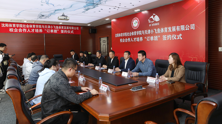 为深化产教融合,校企合作,促进人才培养的高质量发展。3月22日,社会体育学院与天津小飞鱼体育发展有限公司校企合作人才培养“订单班”签约仪式在图书馆501室举行。学校党委常委、副院长于文军,天津小飞鱼体育发展有限公司总经理孟令强、项目经理范长松,社会体育学院领导班子、实习办公室、各教研室主任及全体辅导员出席签约仪式。签约仪式由社会体育学院党总支书记刘秀红主持。