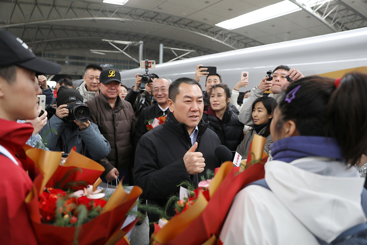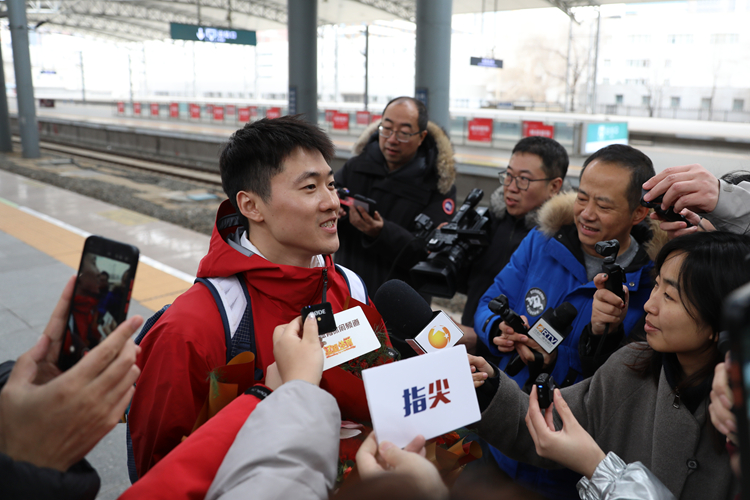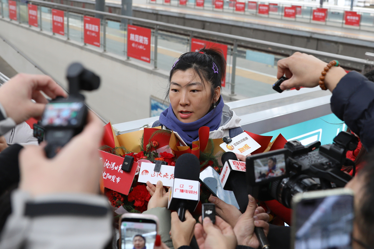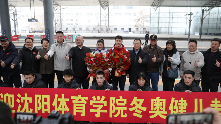 2月25日15:05,我校教师兼运动员、米兰冬奥会自由式滑雪空中技巧男女个人金牌得主王心迪、徐梦桃“冠军夫妇”载誉而归,乘坐列车抵达沈阳北站。学校党委书记高向辉、院长刘征前往迎接,学校党委常委、副院长岳伟,辽宁省体育局、沈阳市苏家屯区委相关领导一同到场,为凯旋的奥运冠军送上最热烈的欢迎。