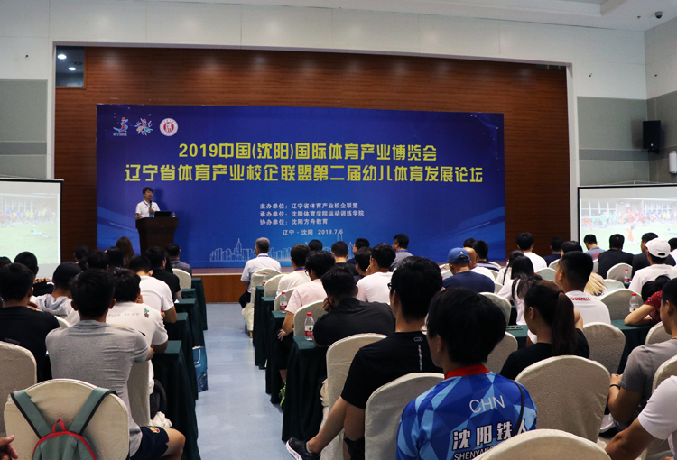 7月6日上午,由辽宁省体育产业校企联盟主办、我校运动训练学院承办、沈阳方舟教育协办的第二届幼儿体育发展论坛在沈阳国际展览中心举行。本次论坛是继2018年第一届幼儿体育发展论坛成功举办后,辽宁省体育产业联盟在2019中国(沈阳)国际体育博览会期间再次举行的重要学术活动。本届论坛邀请到了6位体能与训练、幼儿体育等领域的知名专家和辽宁省体育产业校企联盟20多家联盟单位100多名代表参加。辽宁省体育产业校企联盟儿童健康成长协同创新平台负责人,我校运动训练学院党总支书记兼副院长尤兵主持论坛。