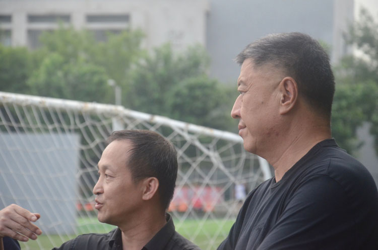 团体操排练负责人杨明老师向副院长唐广宁介绍排练情况