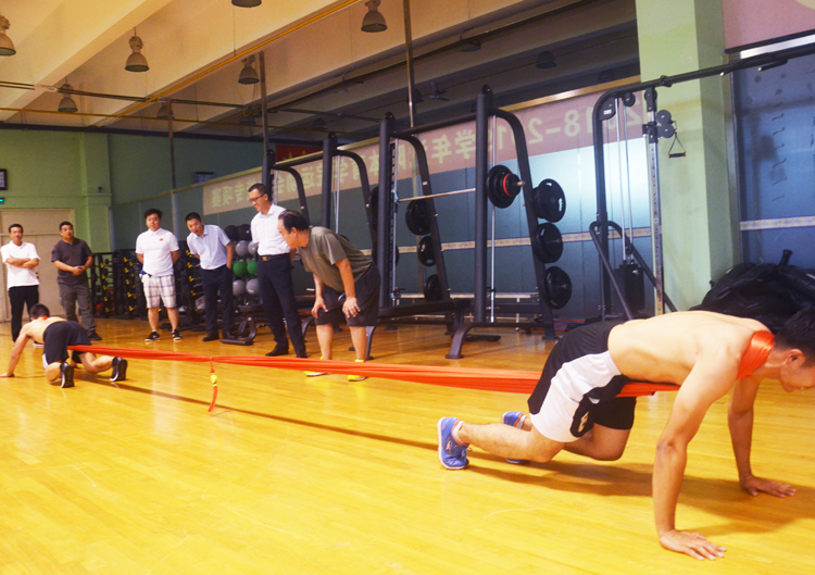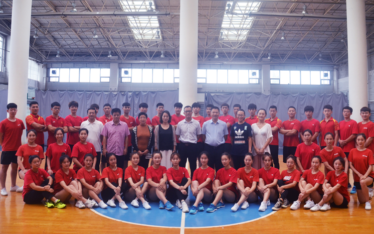 各运动队教练员分别针对各项目特点进行讲解及指导队员进行展示。视察后领导与驻停表演全体队员、指导老师合影留念,并对我校代表队的备战情况、训练场地情况及各项保障服务给予高度评价。
