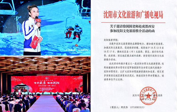 10月12日至17日,我校冰雪教研室党支部书记(教研室主任)、我国首枚雪上项目奥运会奖牌获得者徐囡囡作为沈阳冰雪文旅代表,赴西南、西北地区重点城市成都、西安进行沈阳文化旅游推介活动。