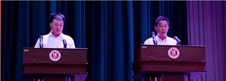 教务处处长曹连众同志宣读学校《关于2021届本科毕业生准予毕业及授予学士学位的决定》和《关于表彰沈阳体育学院2021届本科优秀毕业论文(设计)的决定》。
