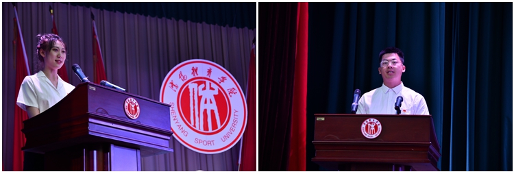 2017级武术与舞蹈学院表演三班王浩戎代表毕业生发言。2018级体育教育学院张华鑫代表全体在校生发言。